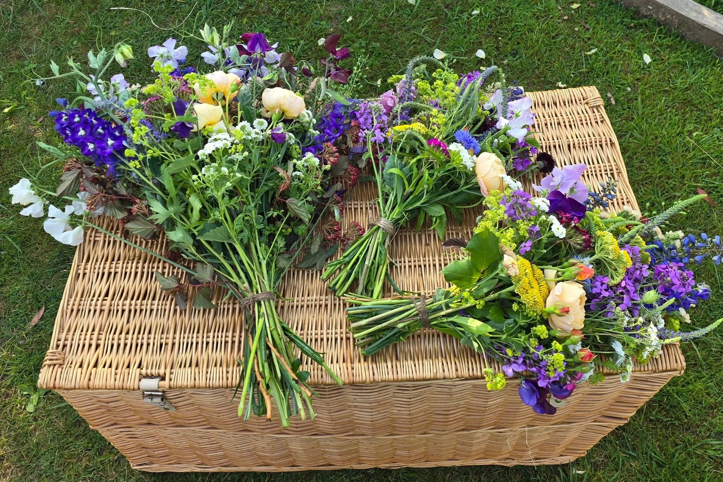 “Thank you so much for the most beautiful spray you made for my mum. They really were so lovely andjust what I was hoping for, I know my mum would have loved them too as she was a great lover of flowers. There were many lovely comments about them, even the vicar requested that when it was her time she would like something similar on her coffin! And of course my daughter very much admired them and loved that they were locally grown and everything was sustainable.”