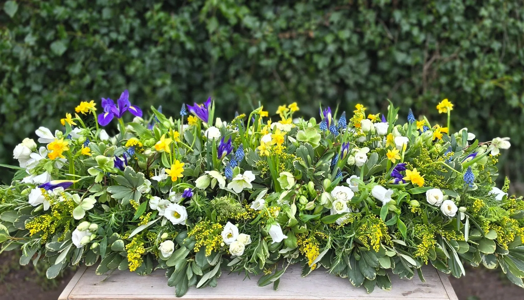 Every design is made with care, using seasonal flowers arranged in a soft, natural style. We promise to create something honest, heartfelt and quietly beautiful — a tribute that feels right for you and your family. We specialise in eco-friendly, biodegradable funeral flowers that offer a sustainable alternative to traditional floral tributes and are suitable for green burial sites. Our arrangements are designed to leave an impact on hearts and minds, and not the planet, with no floral foam or single-use plastic used in any floral tribute.
