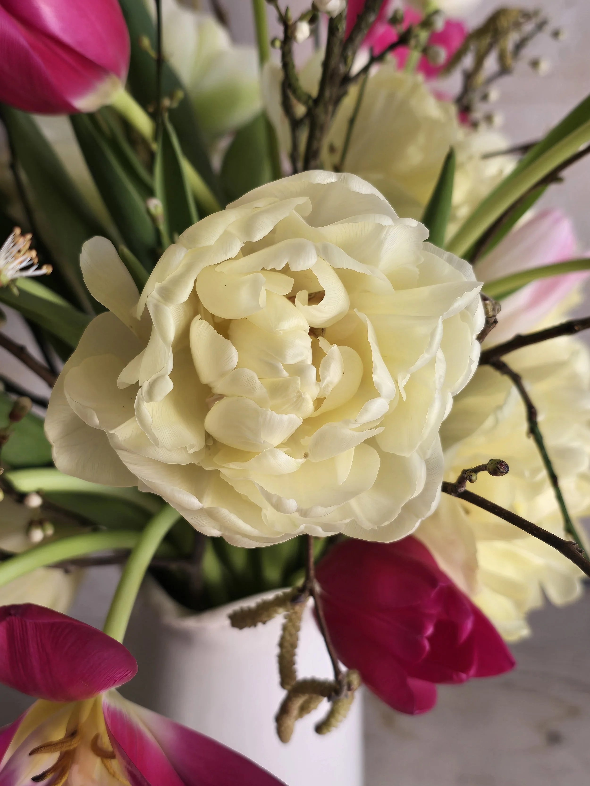 A seasonal mix of British‑grown stems gathered the Wild & Unruly way — relaxed and natural. Expect spring favourites: tulips, narcissi, anemones, ranunculus, plus fresh foliage. Every stem is chosen for character — the bends, the quirks, the bits that make flowers feel real. Wrapped simply in our eco‑friendly packaging, it’s a down‑to‑earth, good‑honest bunch for mums who prefer something natural.